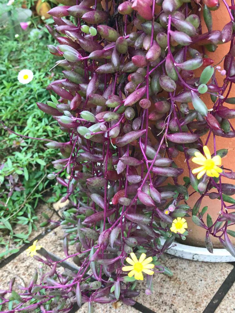 雨風の中でも外にいるネックレスにお花が咲きました🌼