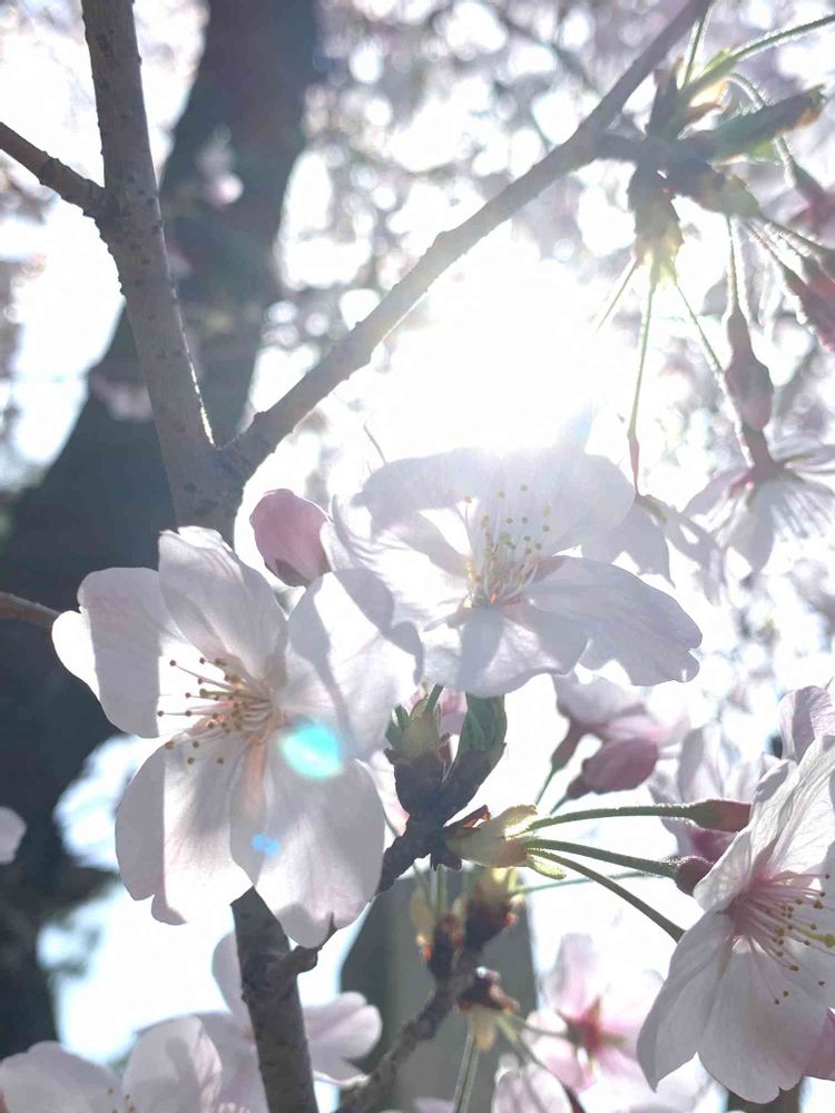 太陽の光が射し込んでいて、さくらがキラキラ✨