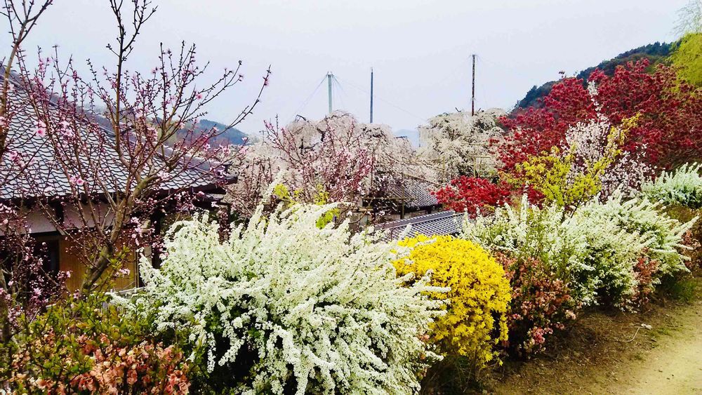 淡いピンクに黄色いレンギョウ、すごく綺麗ですよ。