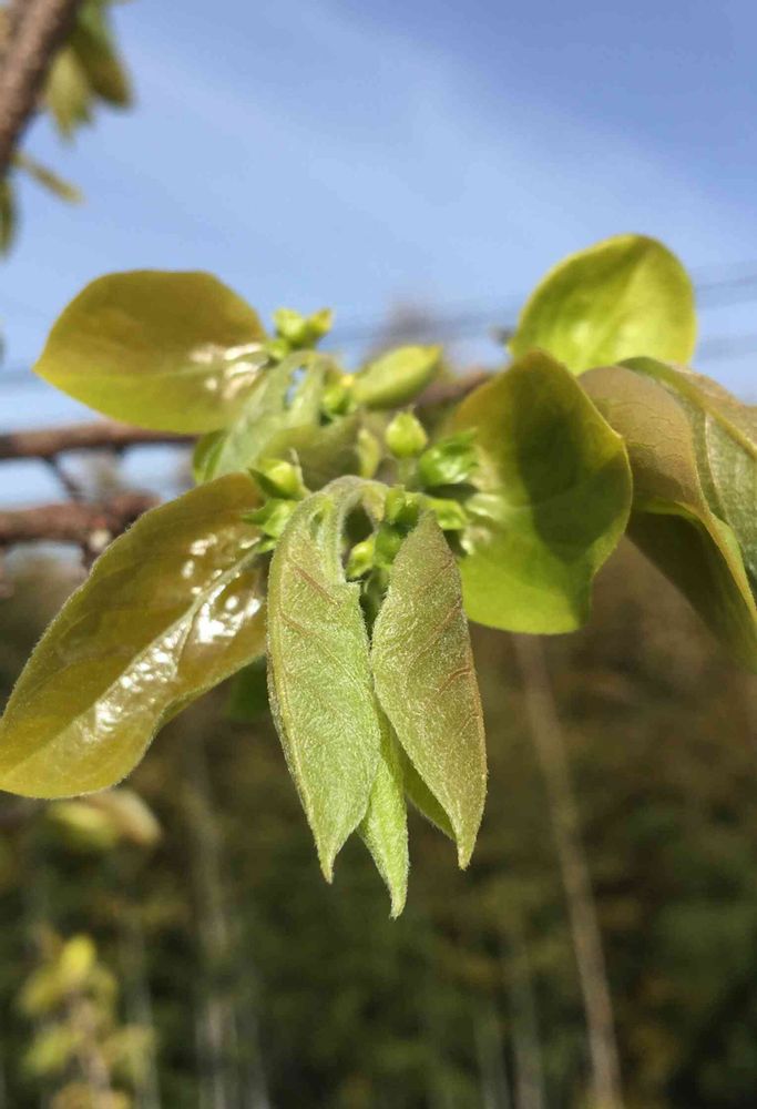 柿が芽吹き始めました。同時に蕾も作られています。沢山みのって欲しいナ〜。