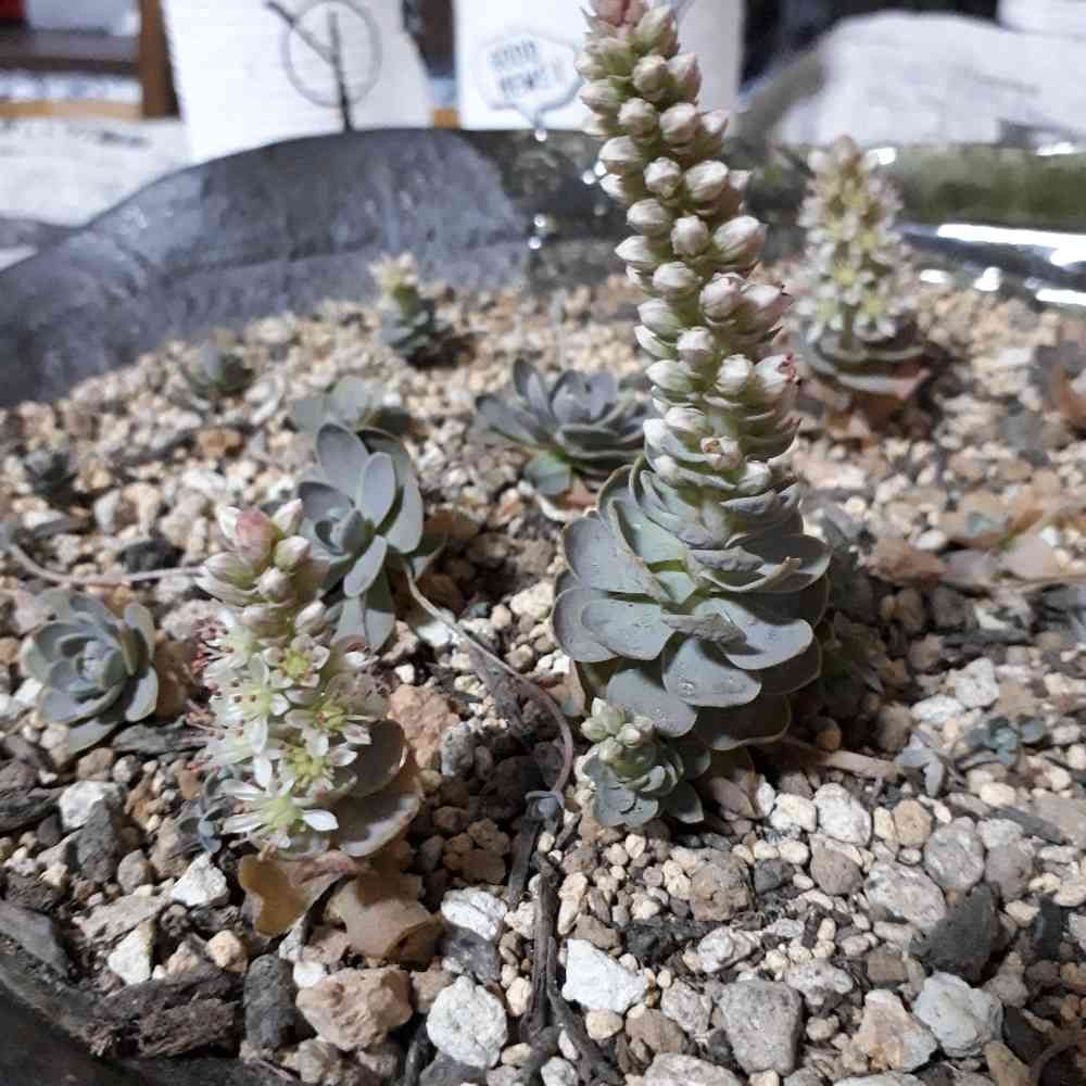 土日バタバタしてて、多肉ちゃんたちを観察する時間がなかったんだけど、夜見たらいつのまにか花が咲いてた(笑)