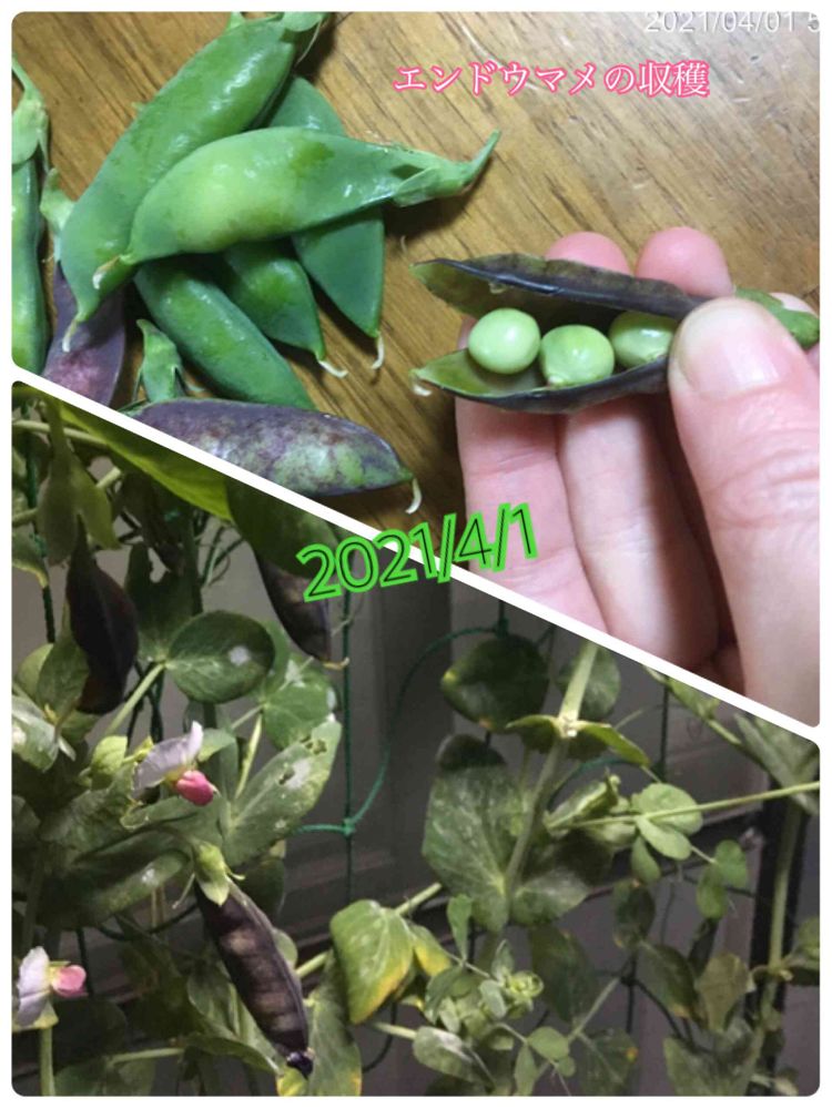 もうそろそろ良いかな、とエンドウマメを収穫しました。蕾もまだあるし、これからもっと育つと良いなぁ。