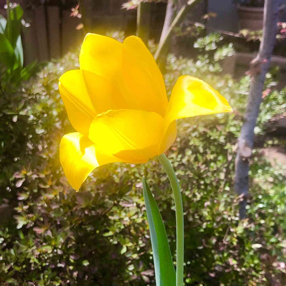 レンズを通すと光っているように見える黄色いチューリップ🌱✨