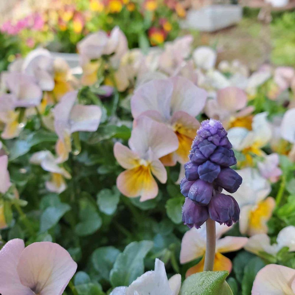 ビオラの中にムスカリ少しだけ