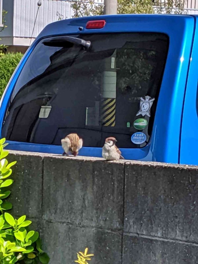 ドアを開けるとびっくりしますから中からpicしたら結局シャッター音で飛び去りました。🤣