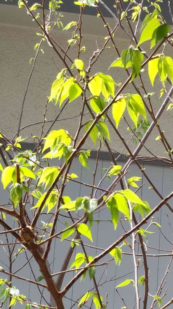 切っても切っても生えて来る小鳥が実を落として生えてくるムクノキの新緑。🐦🍒🌱