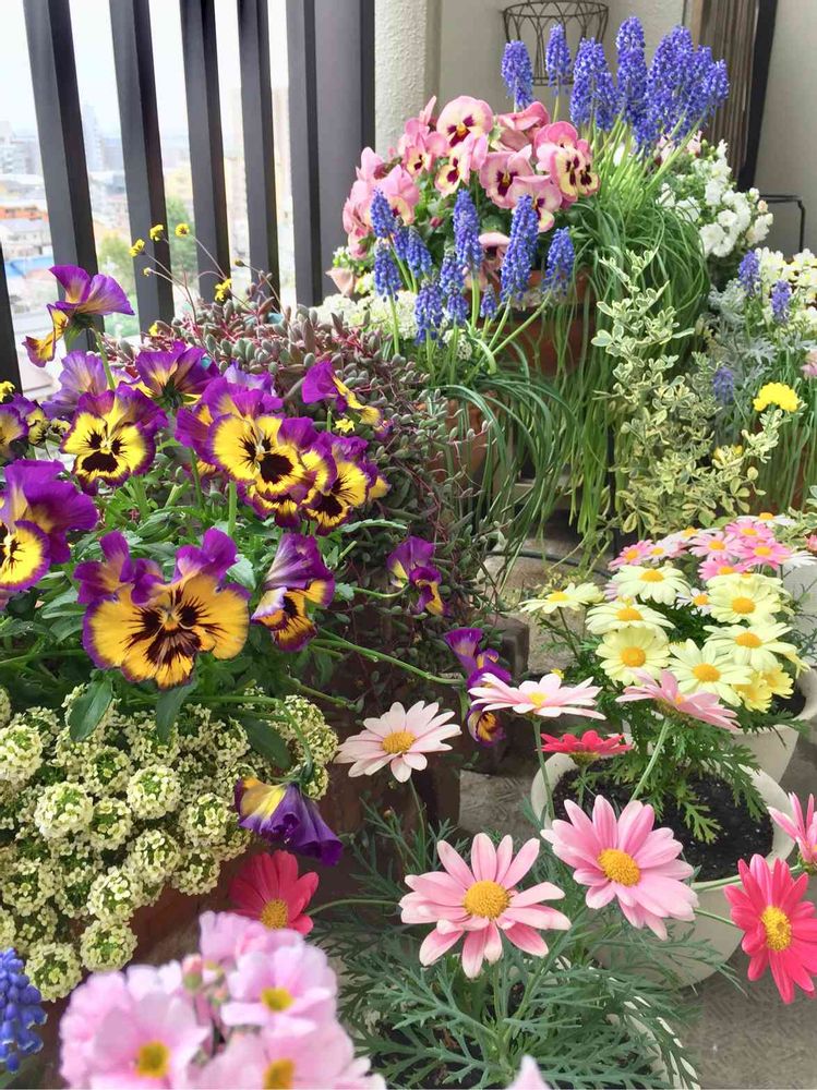 狭いベランダで何だかごちゃごちゃしてますが、お花たちに癒される毎日です🌸🌼🥰
