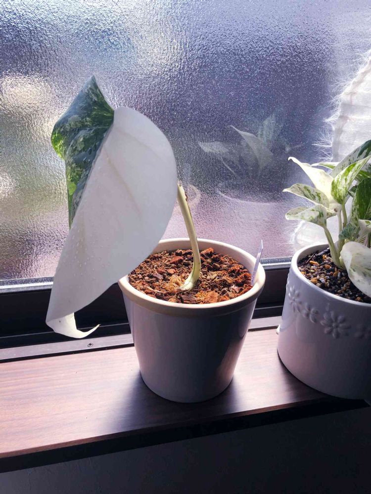 ***斑入りモンステラ初心者のためどうしようか色々調べてみて気根はカットした方が良いとかそのままがいいとか