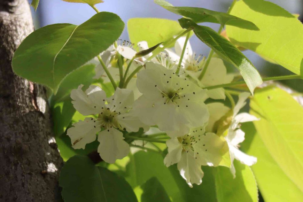 宿り木の宿主になっているヤマナシの木に白い花が咲いてます