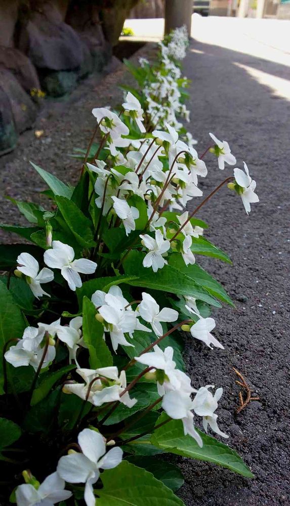 実は道の向こう左に曲がった道にも白スミレロードが続いていました。😊