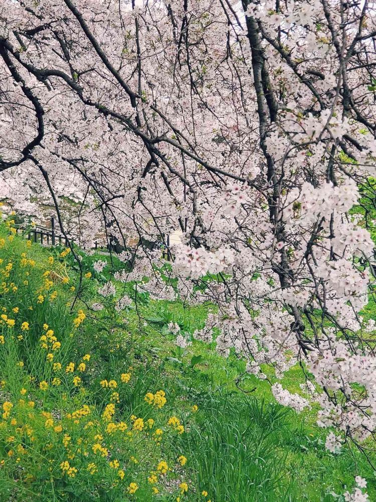 菜の花畑の向こうから、桜の土手を眺める景色が最高です~❣️