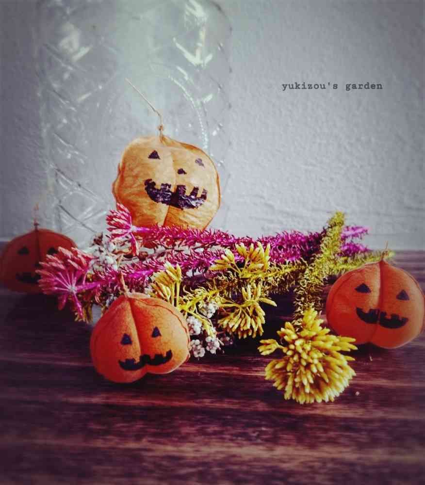 風船カズラをドライにしたものに顔を書いてみました(*^-^*)