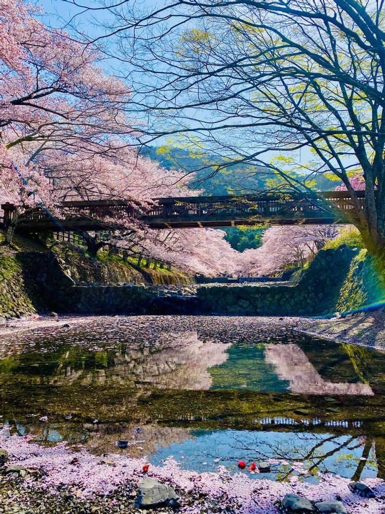 散った花びらや水面に映った桜🌸も美しく、そのまま景色に吸い込まれそうです(๑>◡<๑)💕