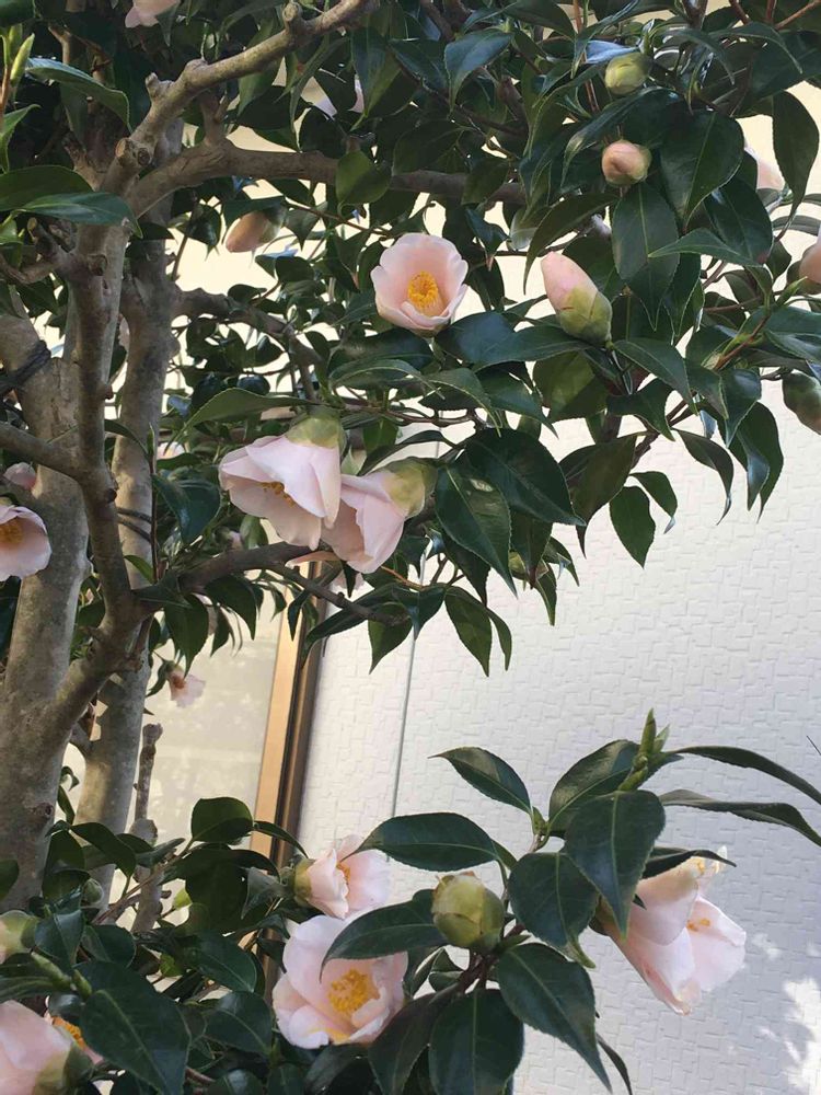 ご近所さんの椿、淡ーいピンクが何とも言えない優しさをかんじました。╰(*´︶`*)╯🌸🌿🌸💞
