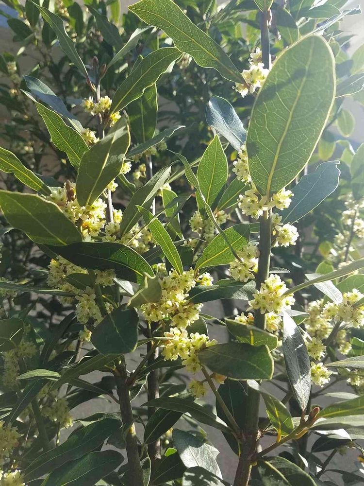 小さな月桂樹の花がたくさん集まり、輝いていました❗🌼☺️