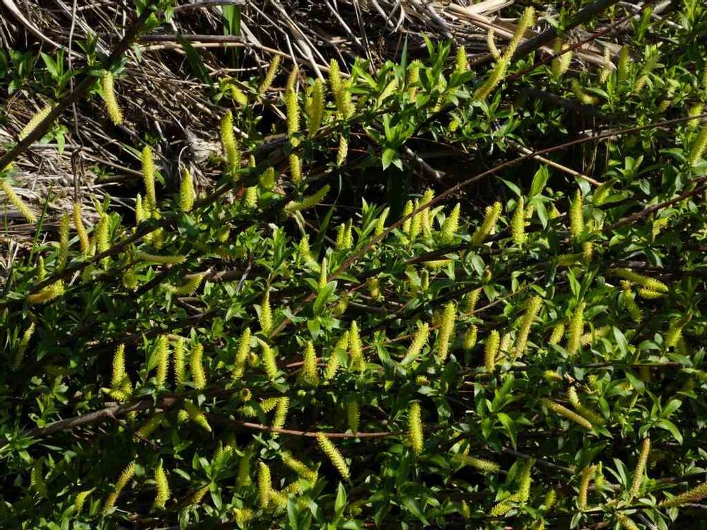 お友達と散歩中、大きな溝川に横たわる猫柳のような植物を発見。