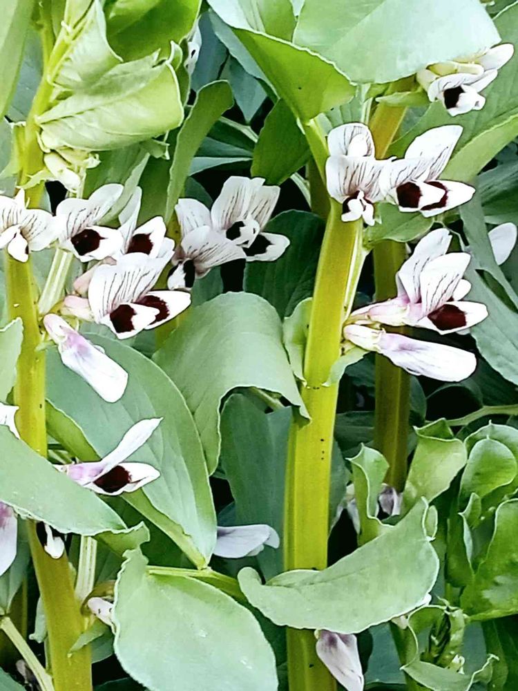 仕事帰りに、通り道の畑の中に、そら豆の花が、咲いていました。