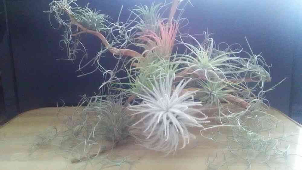 流木にチランジアを飾り付けてみました🎵ワイヤーで固定した物、ただ置いただけの物もあります(*^ω^)