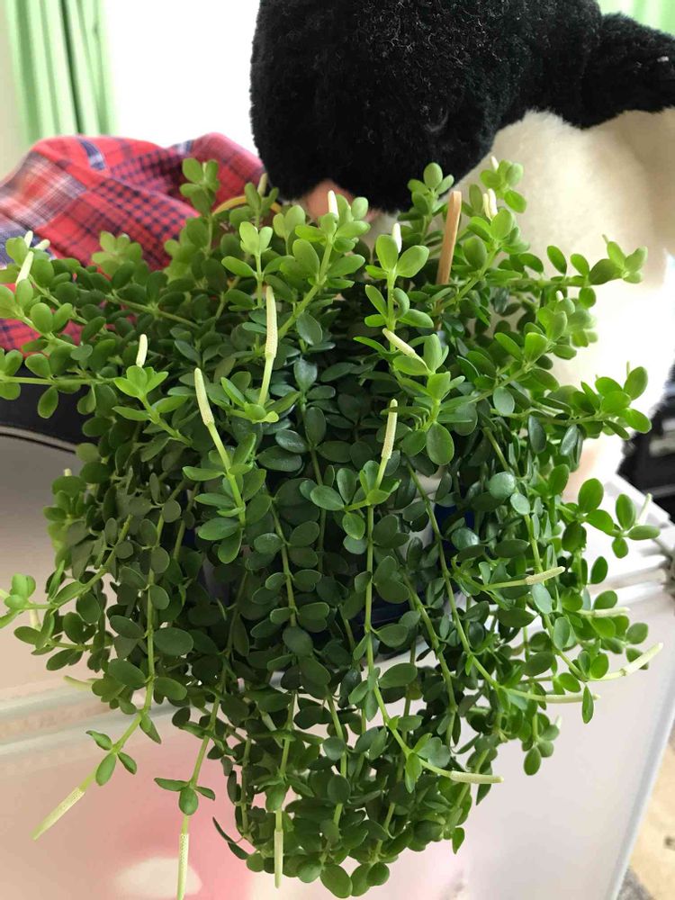 ペペロニアイザベラ、かなり伸びて来ました、花もそのまま付いてます。お水をいっぱい飲んで、元気で、嬉しいです😆