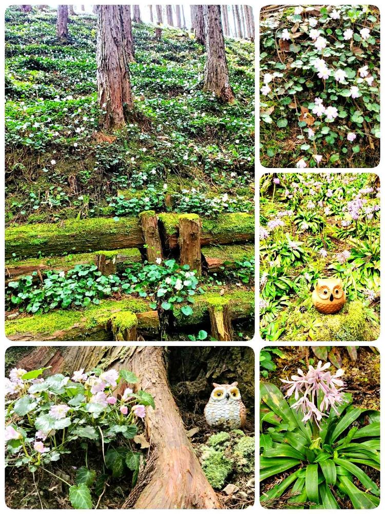 所々にフクロウの置物が置いてあったり入り口直ぐはショウジョウバカマの群生がありましたよ~🎶