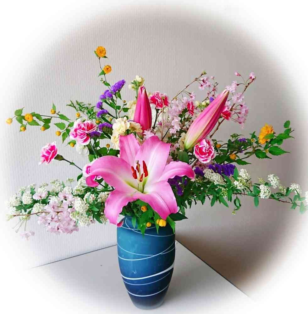 色とりどりのお花が素敵‼️お祝いにふさわしい生け花ですね!
