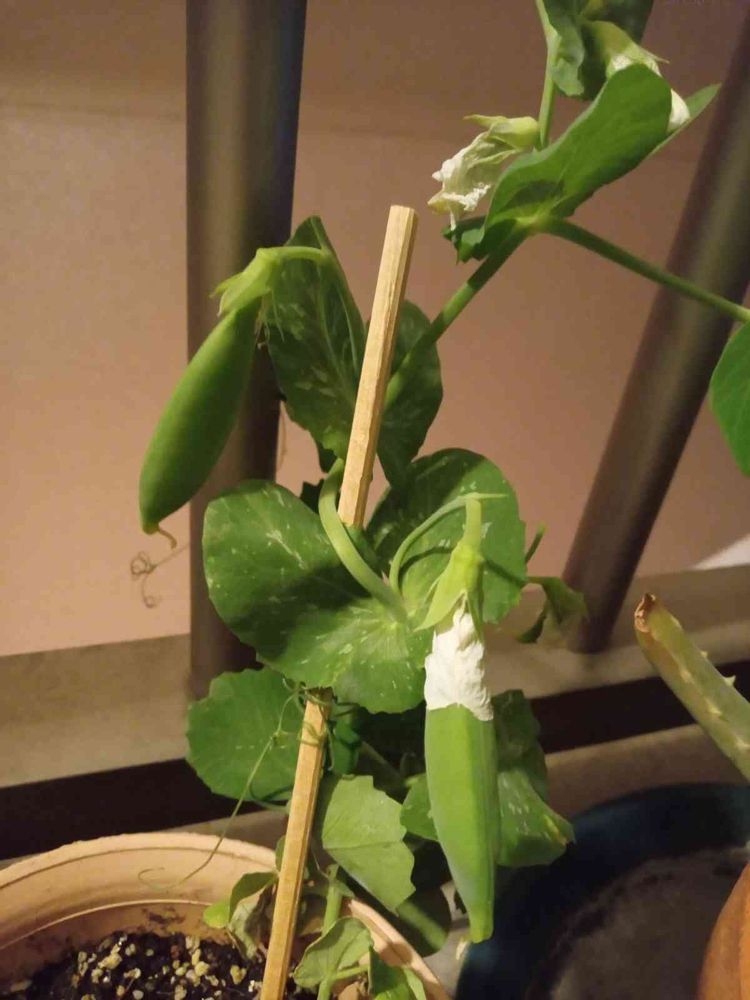 4階の踊り場に去年オクラを植えた鉢がありました。