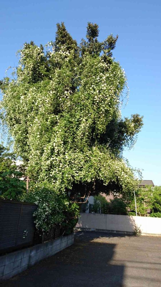 うちのモッコウバラも紫木蓮に絡ませたらどえらいことになったわ🤣