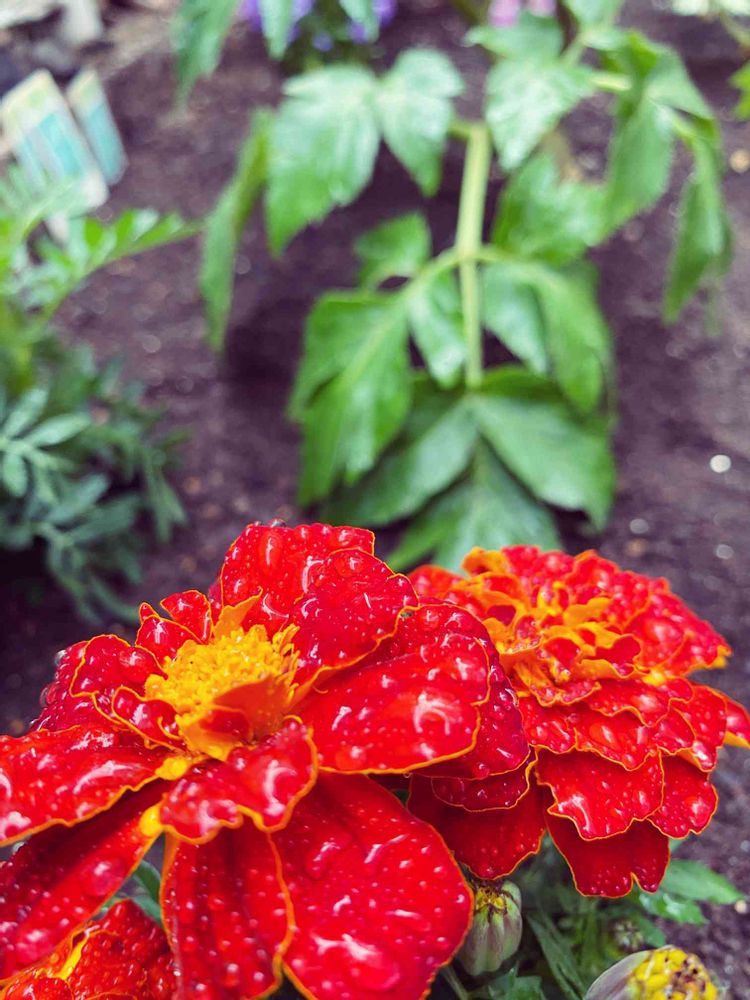 明日葉の庭植えにマリーゴールドを囲い植え🌼