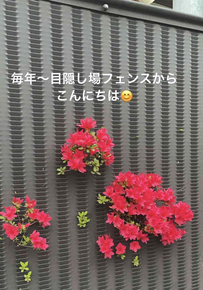 お隣のツツジが、毎春🌸駐車場のフェンスの小さな穴からヒョッコリ出てきて〜キュン❤️