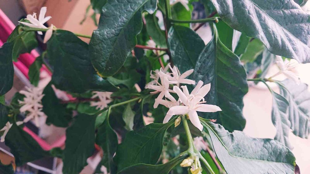 コーヒーの樹に花💠綺麗ですね☕️初めてです🥰