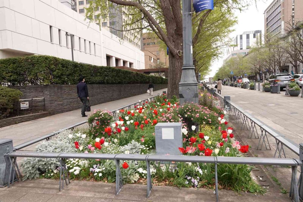 横浜公園から海に向かう道はお花で溢れています。