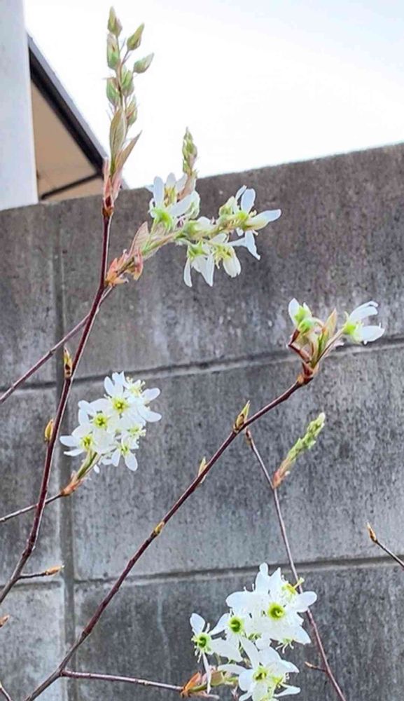 庭に植えたジューンベリーが初めて花を咲かせてくれました😊