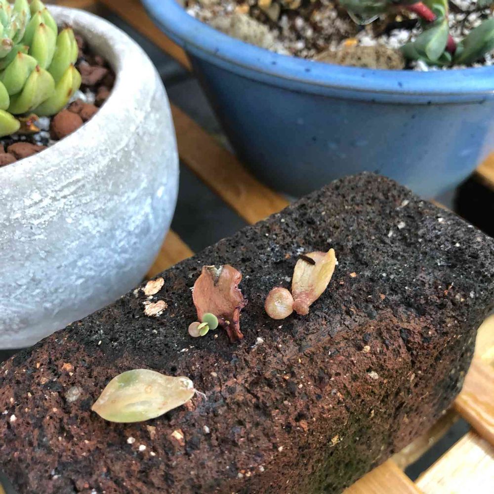 2月に始めた葉挿しっ子!おぼろ月はすぐに芽が出ましたが、種類によってこんなにスピードちがうんですね〜。