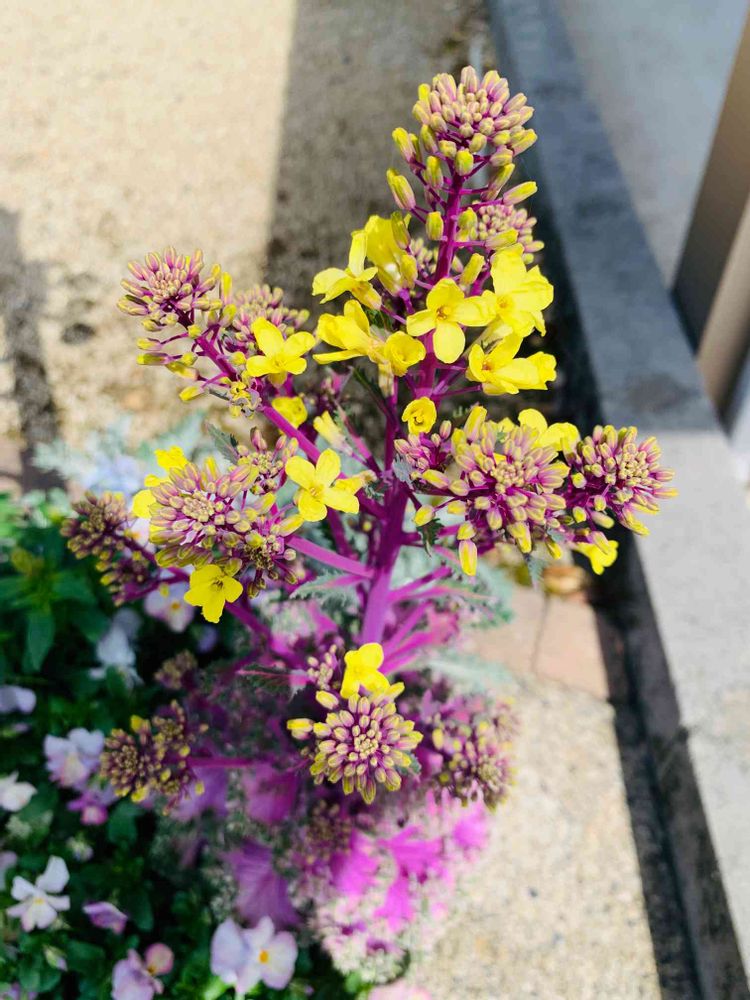 わが家の葉牡丹も徒長して花が咲きだしました‼️ぽぉさんちは肥料がよくて肥えた土なのか茎が太くて立派😉うちはヒョロヒョロです🍀😌🍀