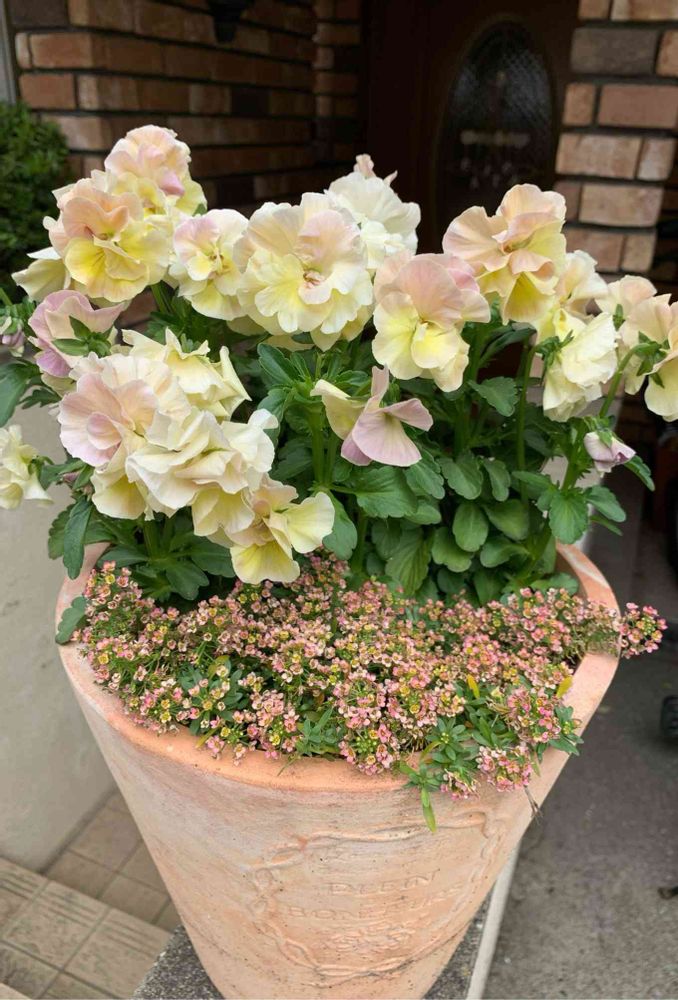 わー、キレイなビオラですねぇ❣️ 下はアリッサムですか? すごく色合いがあっていて素敵ですぅ💖