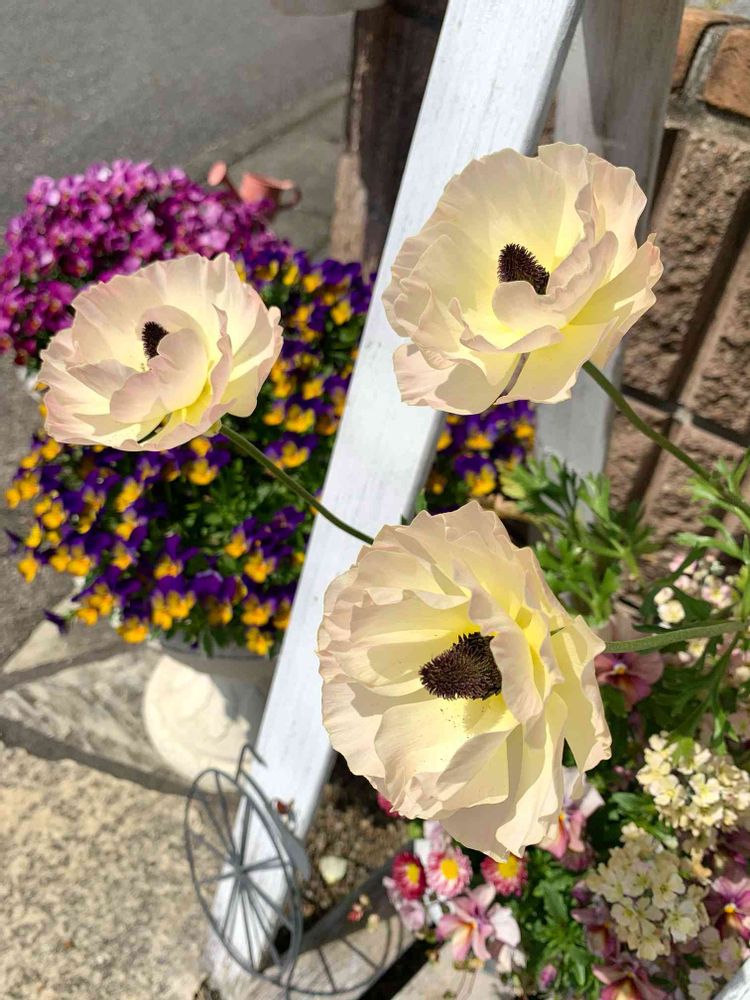 ラナンキュラスもビオラも伸び伸びなので