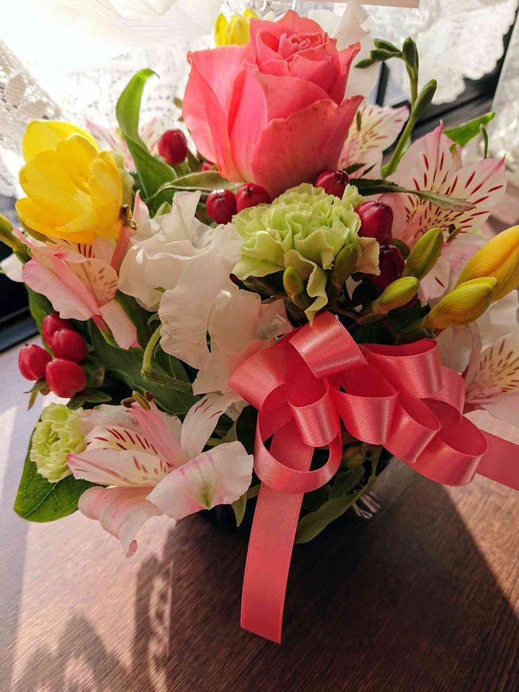 息子さんからの素敵なフラワーアレンジメント💐 よかったですね💕