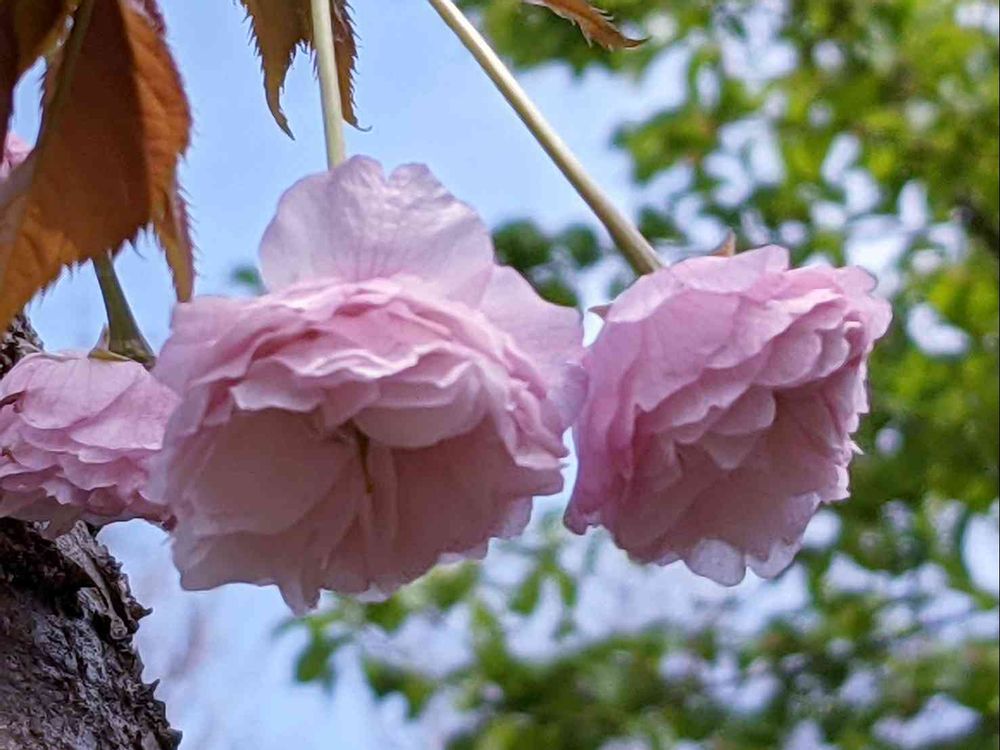 八重の松前桜、今日は木全体がピンクに染まりました。