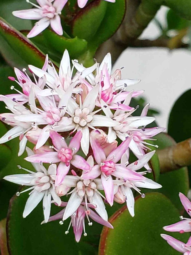 我が家の(金の成る木)にはなかなか花が咲かない。ご近所で咲いていたので、パチリ撮らせてもらいました。