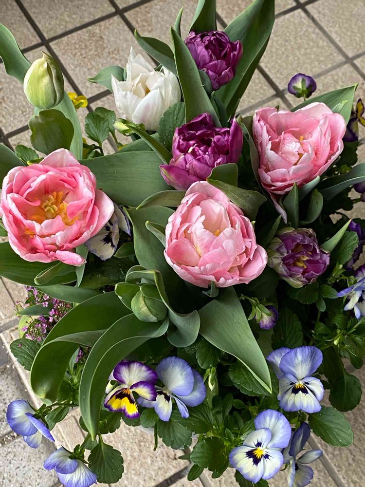 玄関,八重咲きチューリップ,寄せ植えの投稿画像