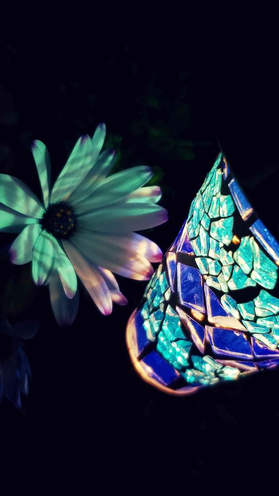 オステオスペルマムが、ライトに照らされてなんとも言えないステキな色合いになってます😍💕💕