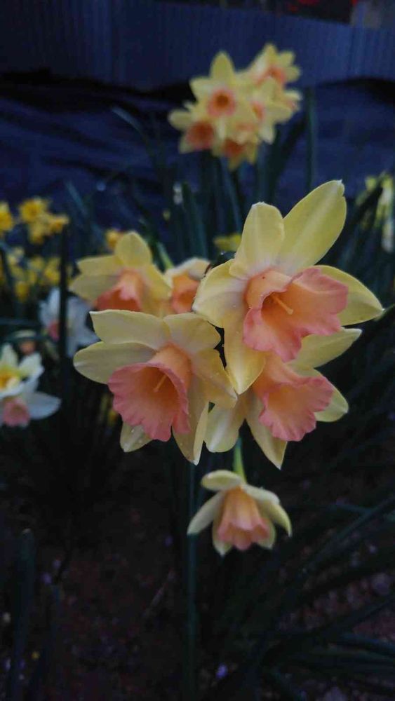 淡い黄色と濃いめのサーモンピンクの対比が美しいです。香り水仙の中では草丈も大きめで花付きも非常に良いです。