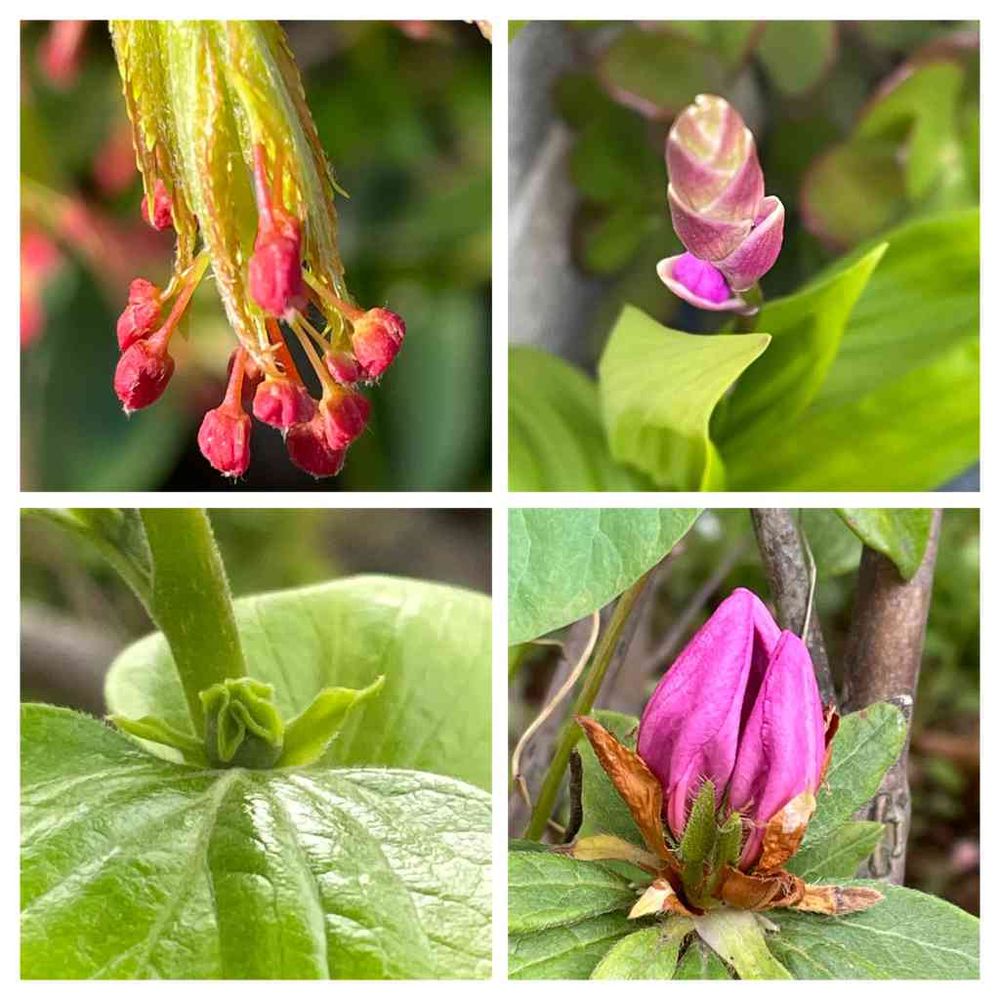 回りの花、木、草何れも新芽蕾だらけで、今日蕾が明日はぱーと咲いていて、毎日忙しいですね😄🎵