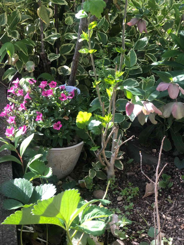 色々、植えています。まとまりがないですが、この時期のここのスペースは、わたしの1番すきな場所。だけど、目の前にすぐ、隣家だから、のぞいてるみたいになるので、なかなかゆっくりいれません😓