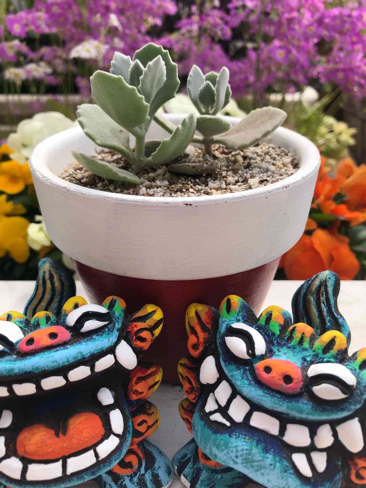 シーサーひょうきんで、カラフルな色が可愛いですね。❤️♥️