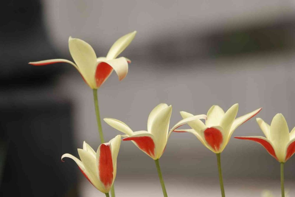 街中の花壇、そこにいるだけで心ほぐれる優しい小さなチューリップです💕