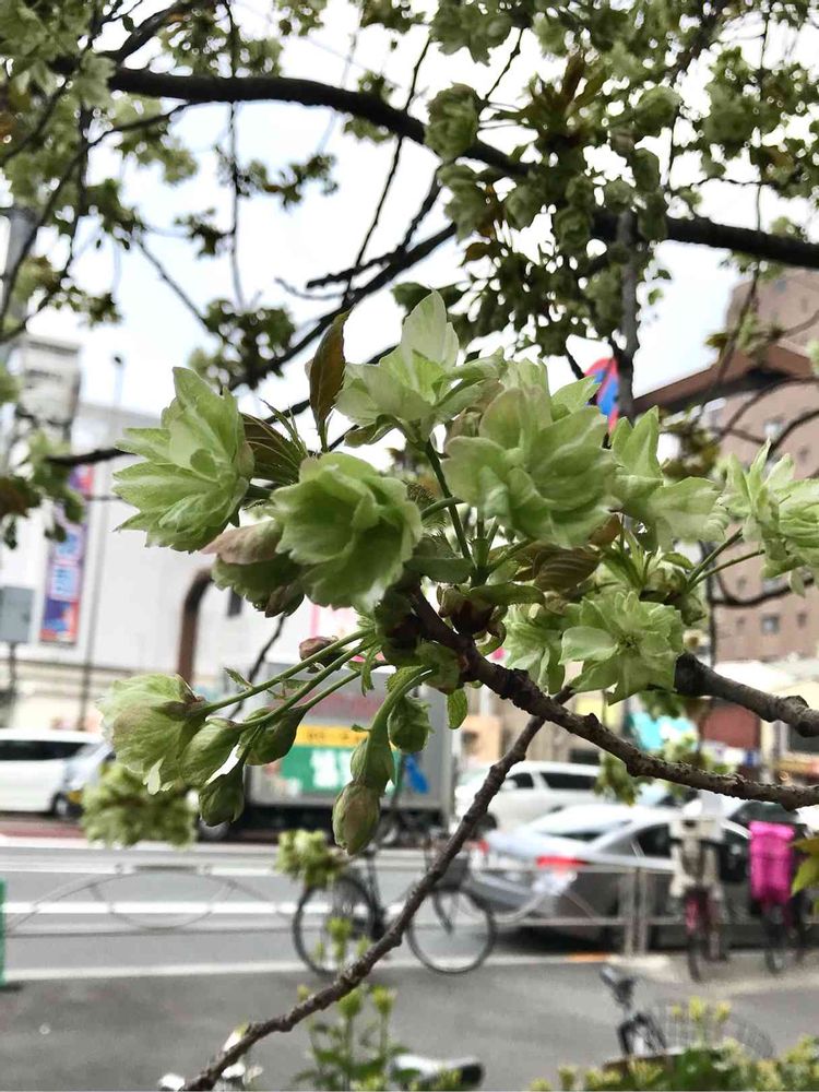 三ノ輪駅前のマクドナルドは御衣黄桜と薄いピンクの八重桜が観られる特等席でした❣️