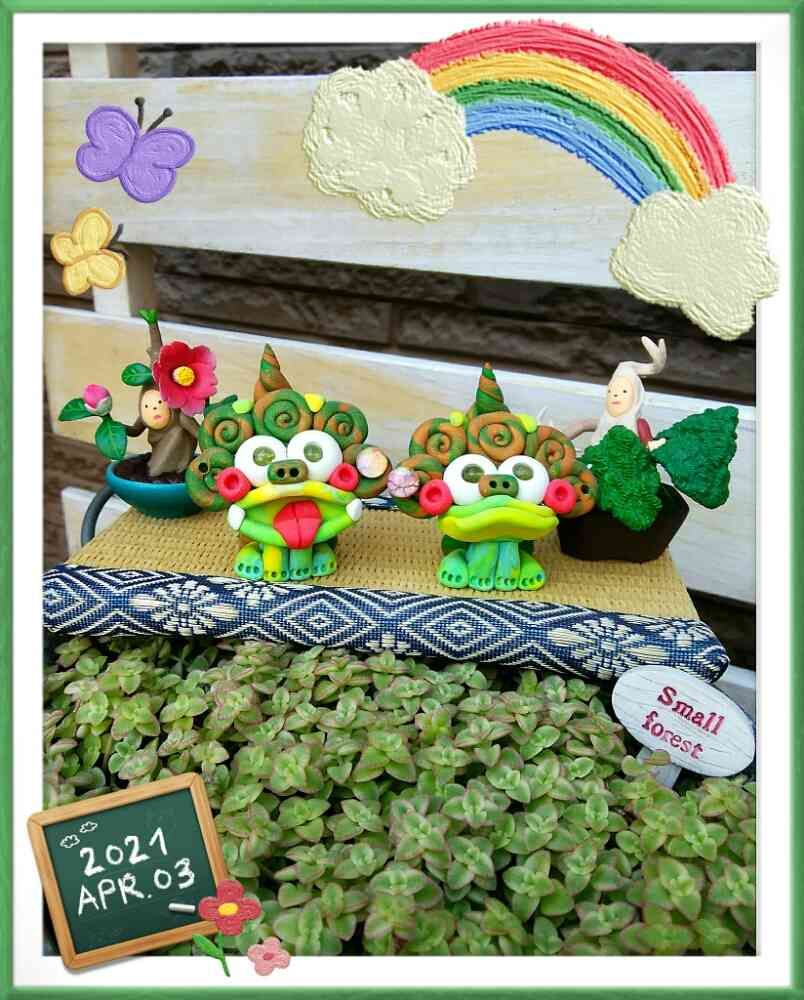 可愛いシーサーが欲しくて昨年探して、多肉やお花と合うグリーンを選びました(*^^*)✨