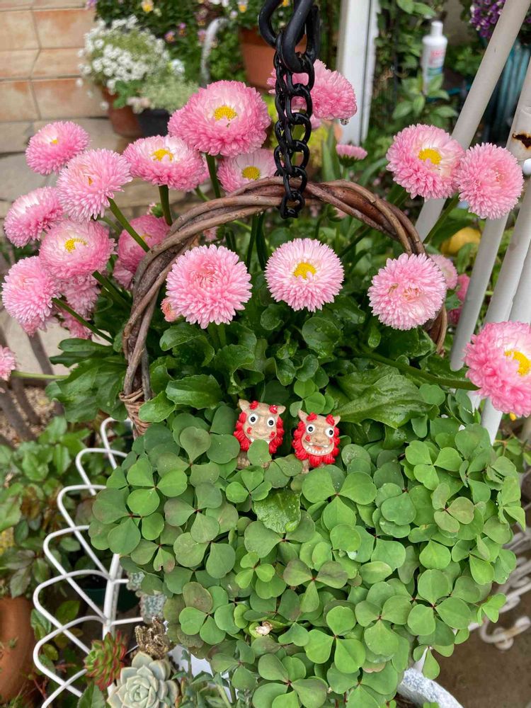 モリモリ〜のチロリアンデージーと花のない薔薇咲きオキザリス