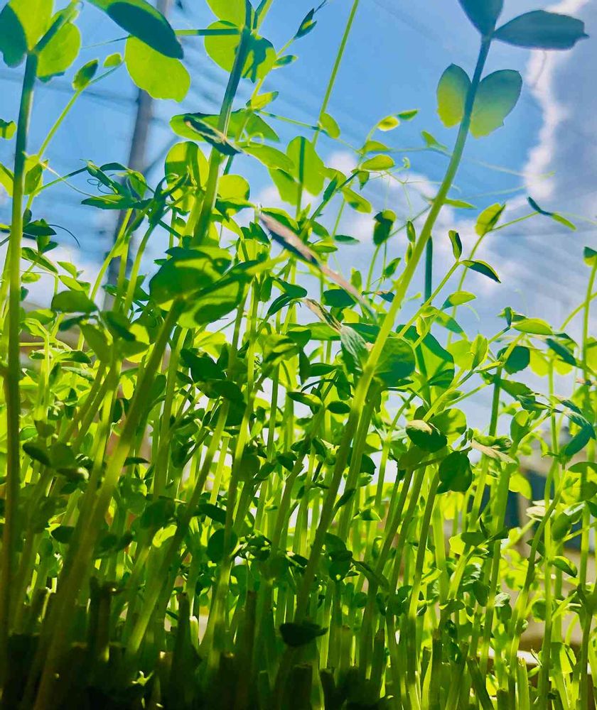 太陽の陽を浴びて豆苗もすくすく育つね🌱✨